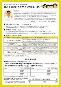 2015/10/13今週は11月16日金曜日に、金沢市と小松市で「親の会」が開催されます。関心のある方は、ぜひご参加ください。
